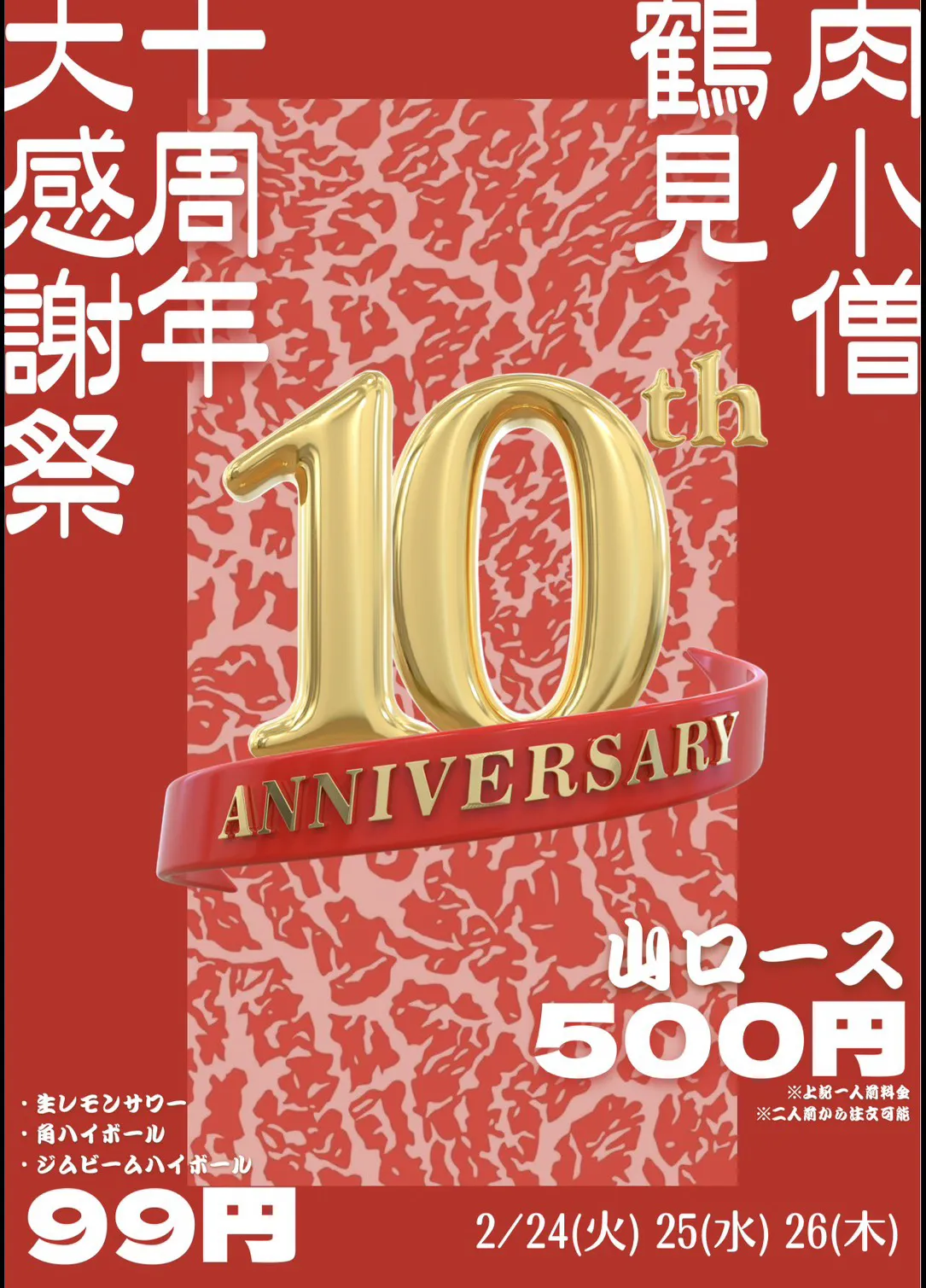 日頃の皆様からのご愛顧に感謝の気持ちを込めまして、2月24日~26日の3日間限定で「十周年大感謝祭」を開催いたします!